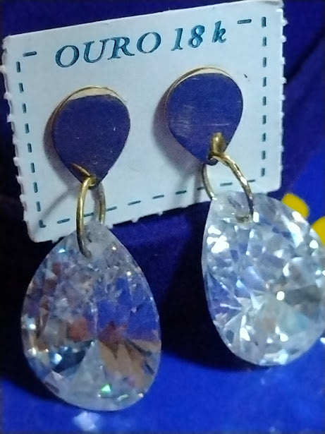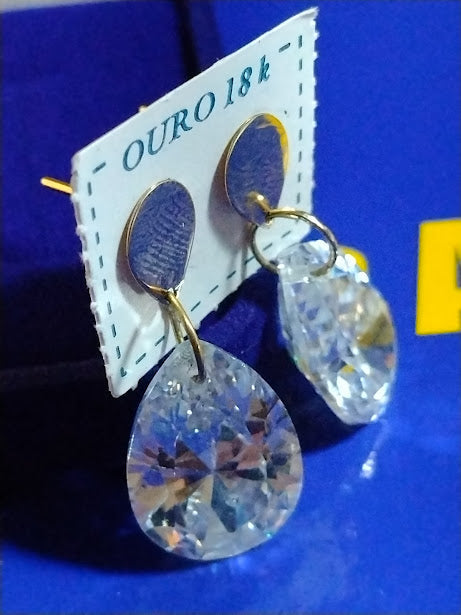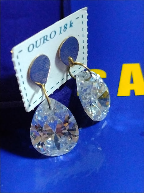 Brinco Ouro 18 Kilates Pedra Zicônia Peso 9.00 Gramas 20 x 13 mm