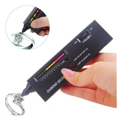 "Diamond Selector II" é um dispositivo eletrônico portátil para distinguir diamantes verdadeiros de outras pedras simuladas.