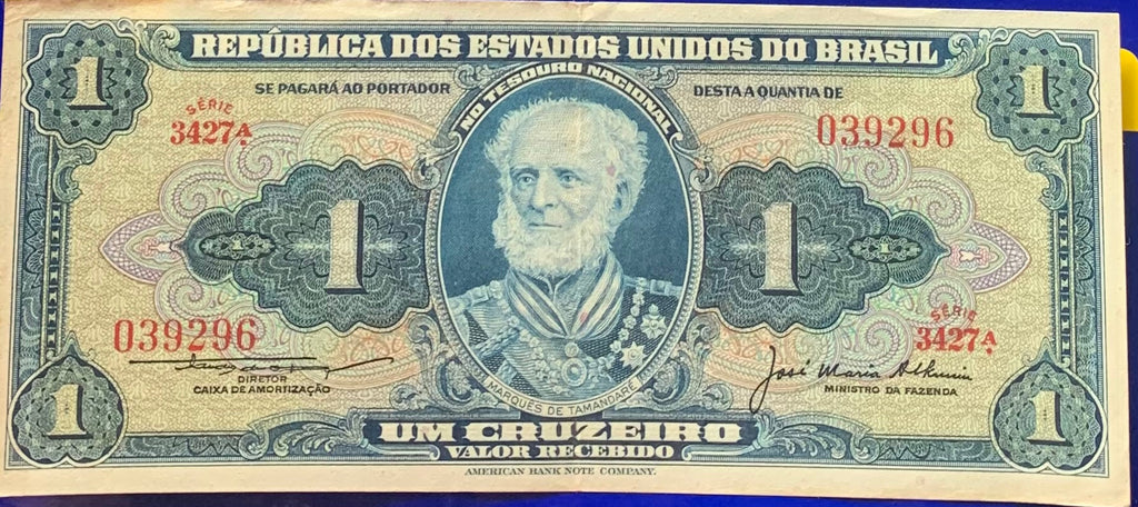 Cédula 1 Cruzeiro República dos Estados Unidos do Brasil Antigas Coleção