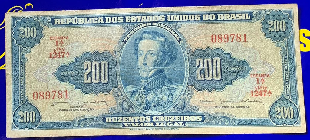 Cédula 200 Cruzeiros Antigas Coleção Brasil Rara e Nova Linda