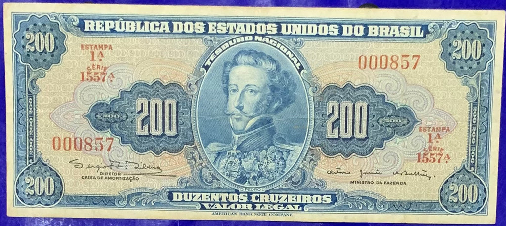 Cédula 200 Cruzeiros Antigas Coleção Republica dos Estados Unidos do Brasil