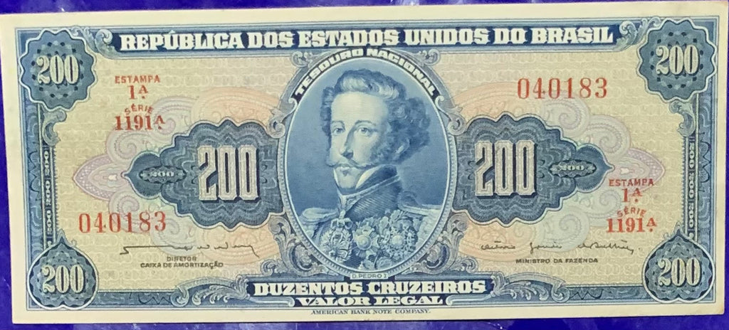 Cédula 200 Cruzeiros Antigas Coleção Republica dos Estados Unidos do Brasil Nova