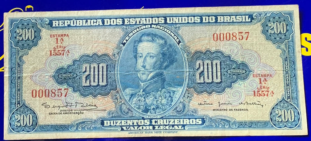 Cédula 200 Cruzeiros Brasil Antigas Coleção Brasil