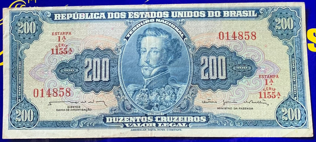 Cédula 200 Cruzeiros República dos Estados Unidos Do Brasil Antigas Coleção Brasil Rara e Nova