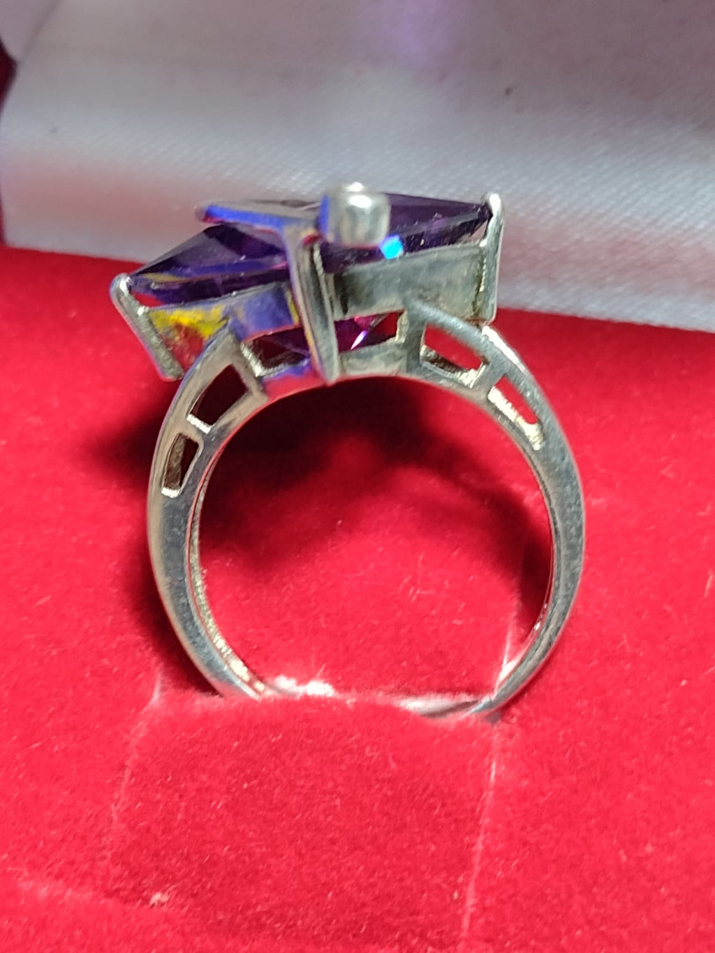 Anel Prata 950 Modelo Moderno com pedras de Zircônia e Zircônia LIlas 8 x 8 mm 7.50 Gramas