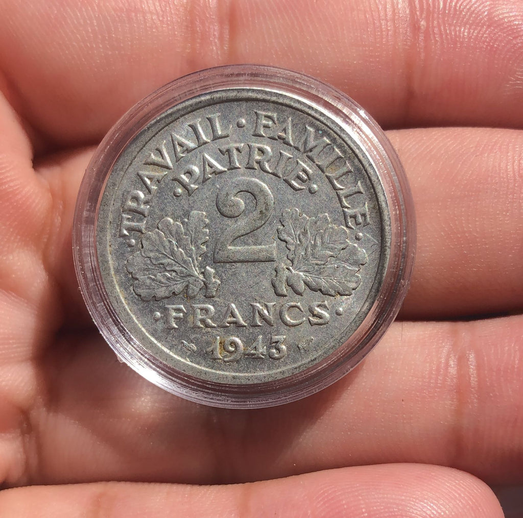 Moeda 2 Franc 1943 Estrangeira Para Coleção Linda Moeda em Cápsula
